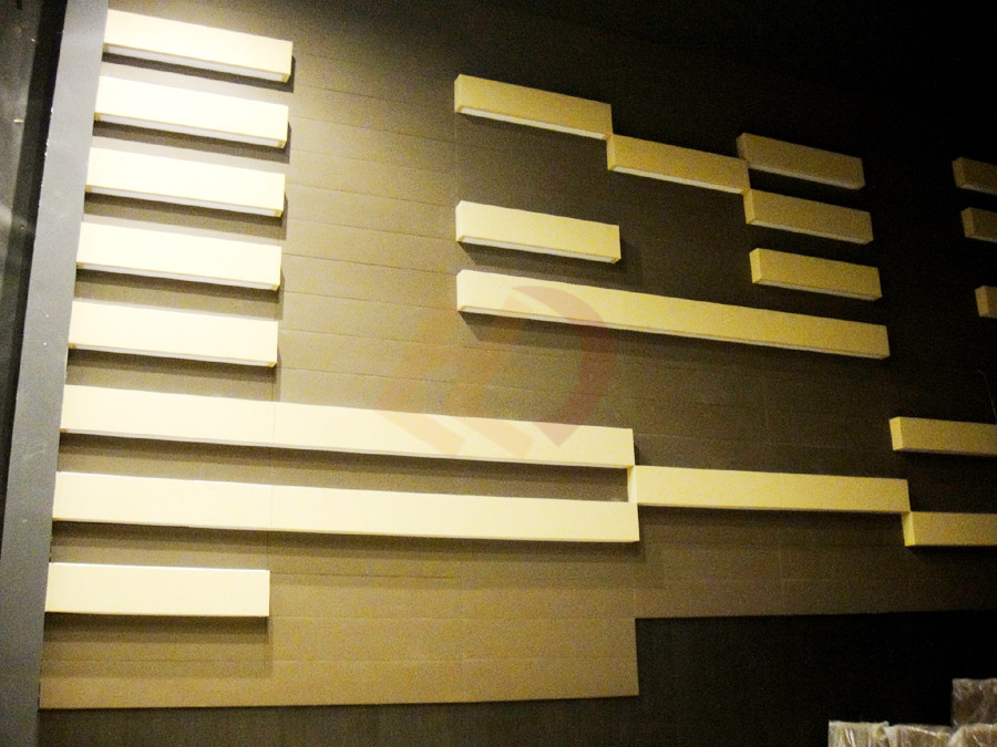 1、100%阻燃聚酯纖維織物包覆的玻纖吸聲板(多種形狀)