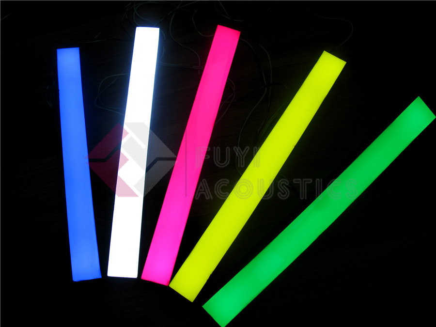 LED樹(shù)脂發(fā)光體采用新工藝特制而成,區(qū)別于傳統(tǒng)亞克力燈帶,此產(chǎn)品實(shí)現(xiàn)了成品安裝,更換方便,耐久節(jié)能,發(fā)光均勻,效果美觀,可調(diào)光漸變,搭配各種異形吸聲板,實(shí)現(xiàn)個(gè)性化定制加工。